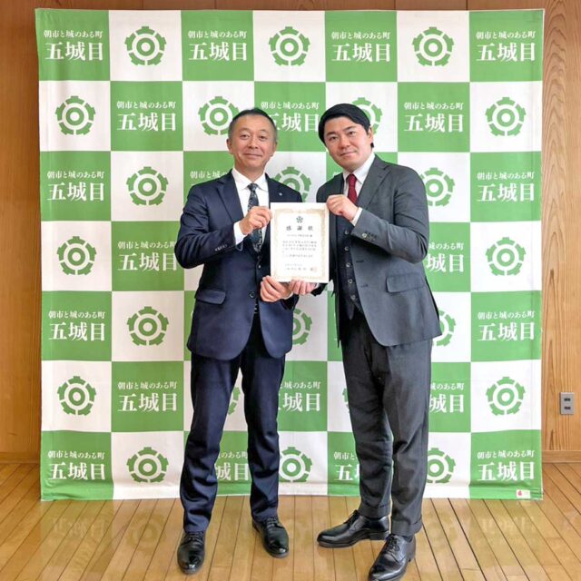 秋田県南秋田郡五城目町にて企業版ふるさと納税への感謝状を拝受しました