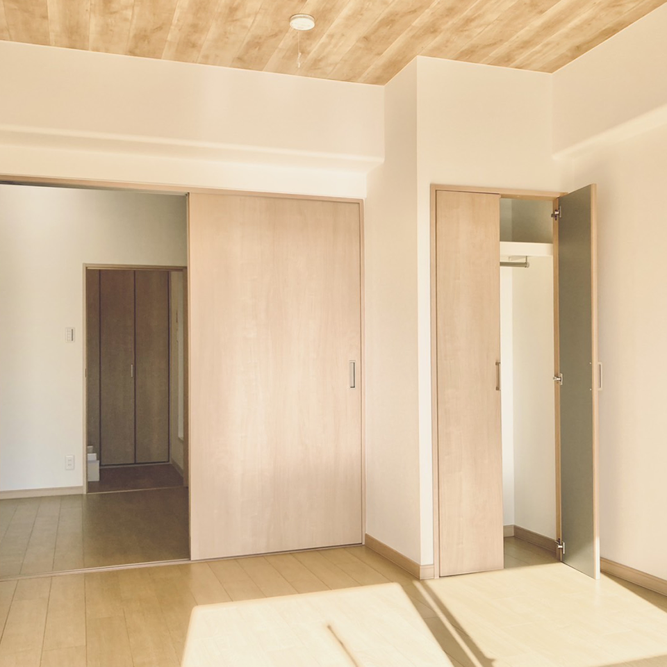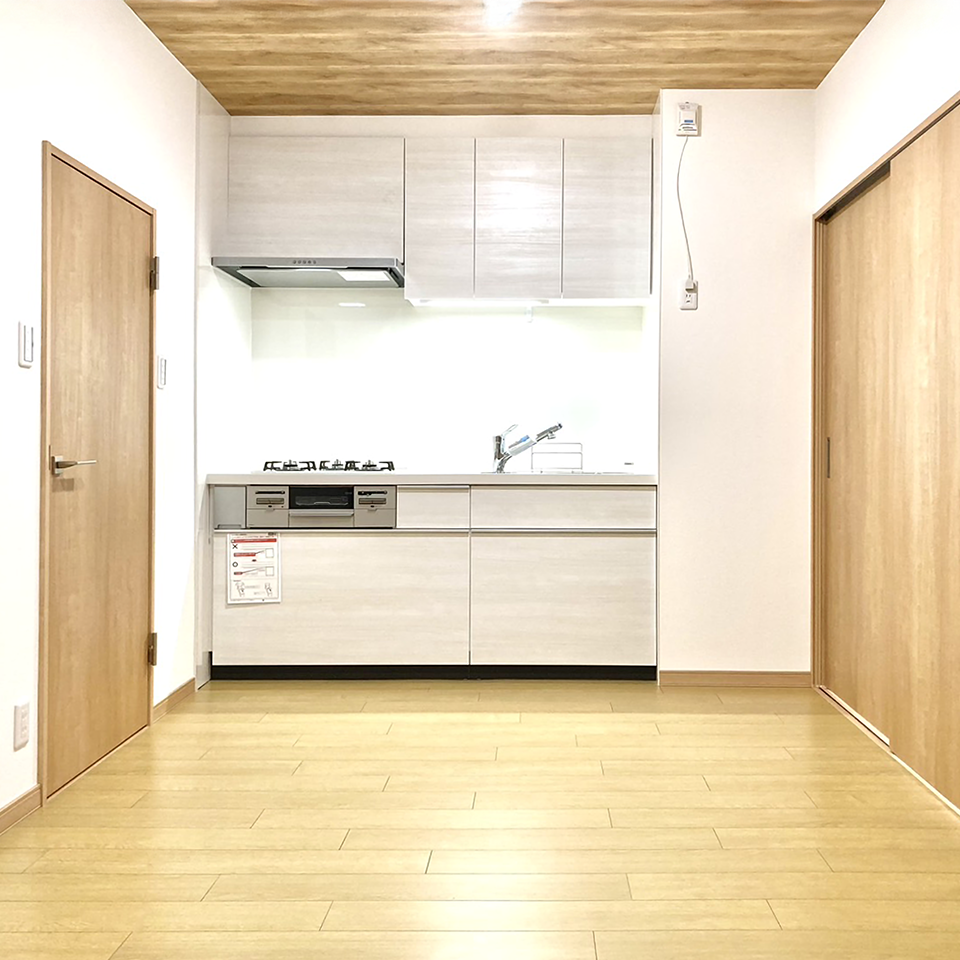 床、扉、天井に木目を配し、日本古来の木のぬくもりと木の安心感を住空間にプラス。 またキッチンも浄水器やグリルなど使う人のことを考えた設計にしました。