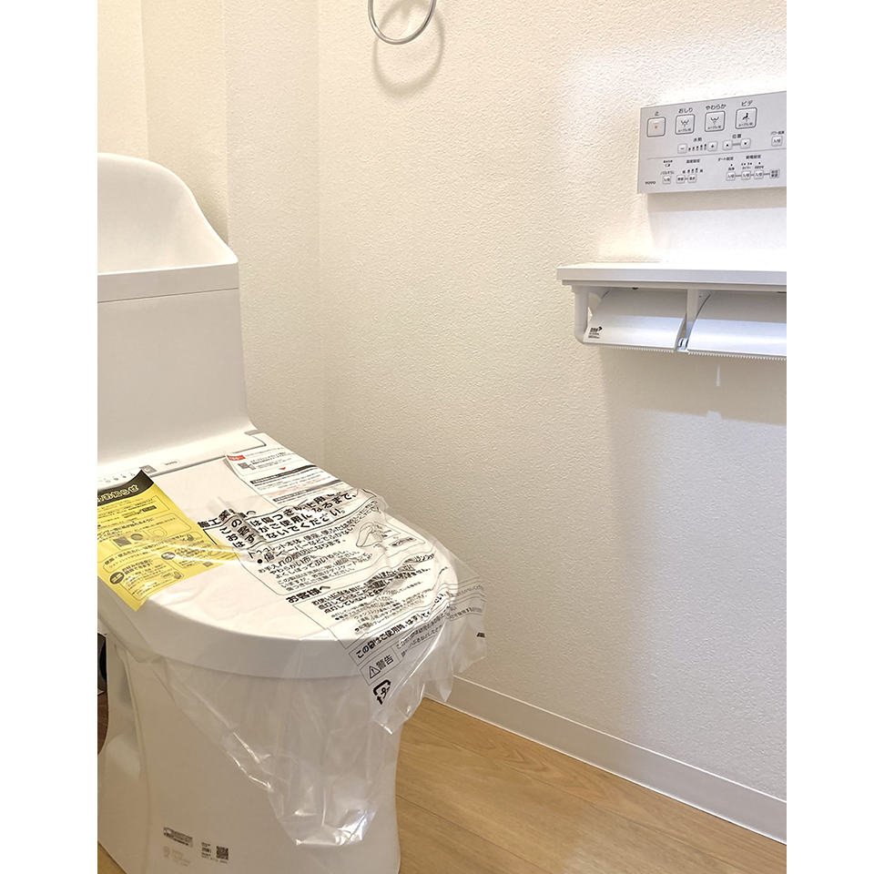 使い慣れた機能重視のトイレを採用しましたが、床材はあえてフローリングに変更。 また、ペーパーホルダーをダブルにし、更に使い勝手をアップ。